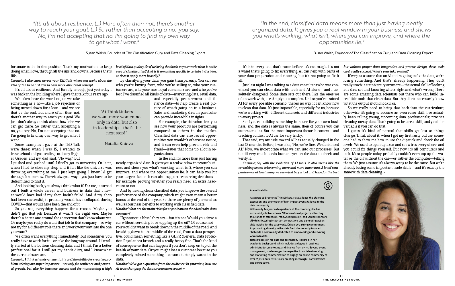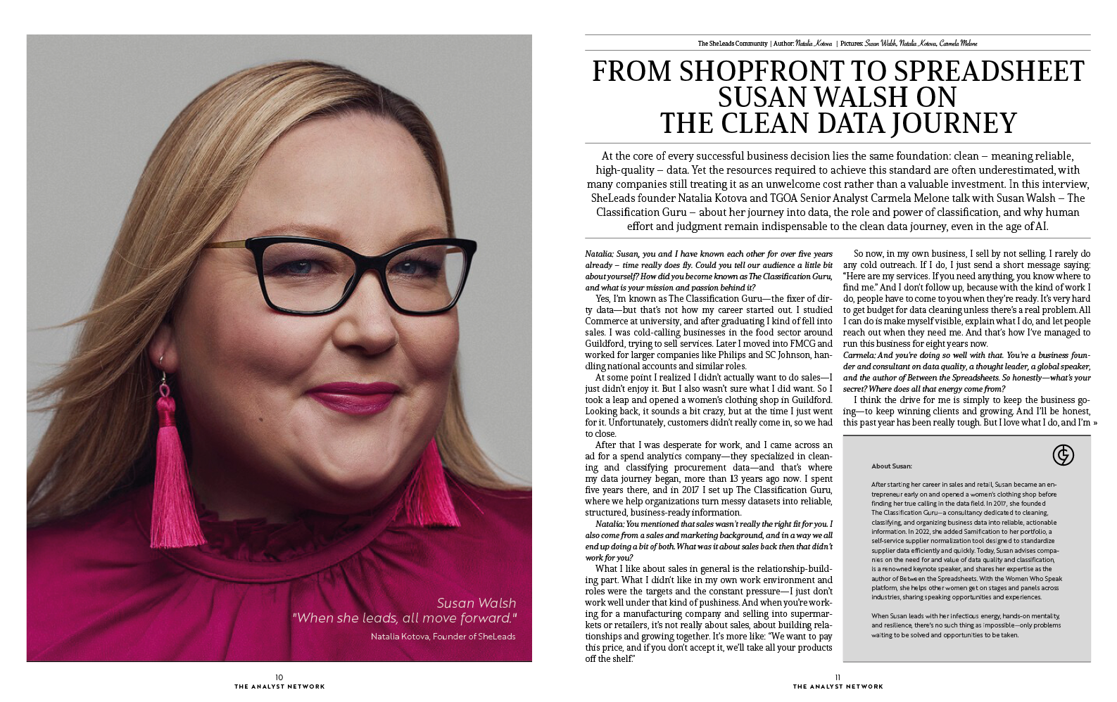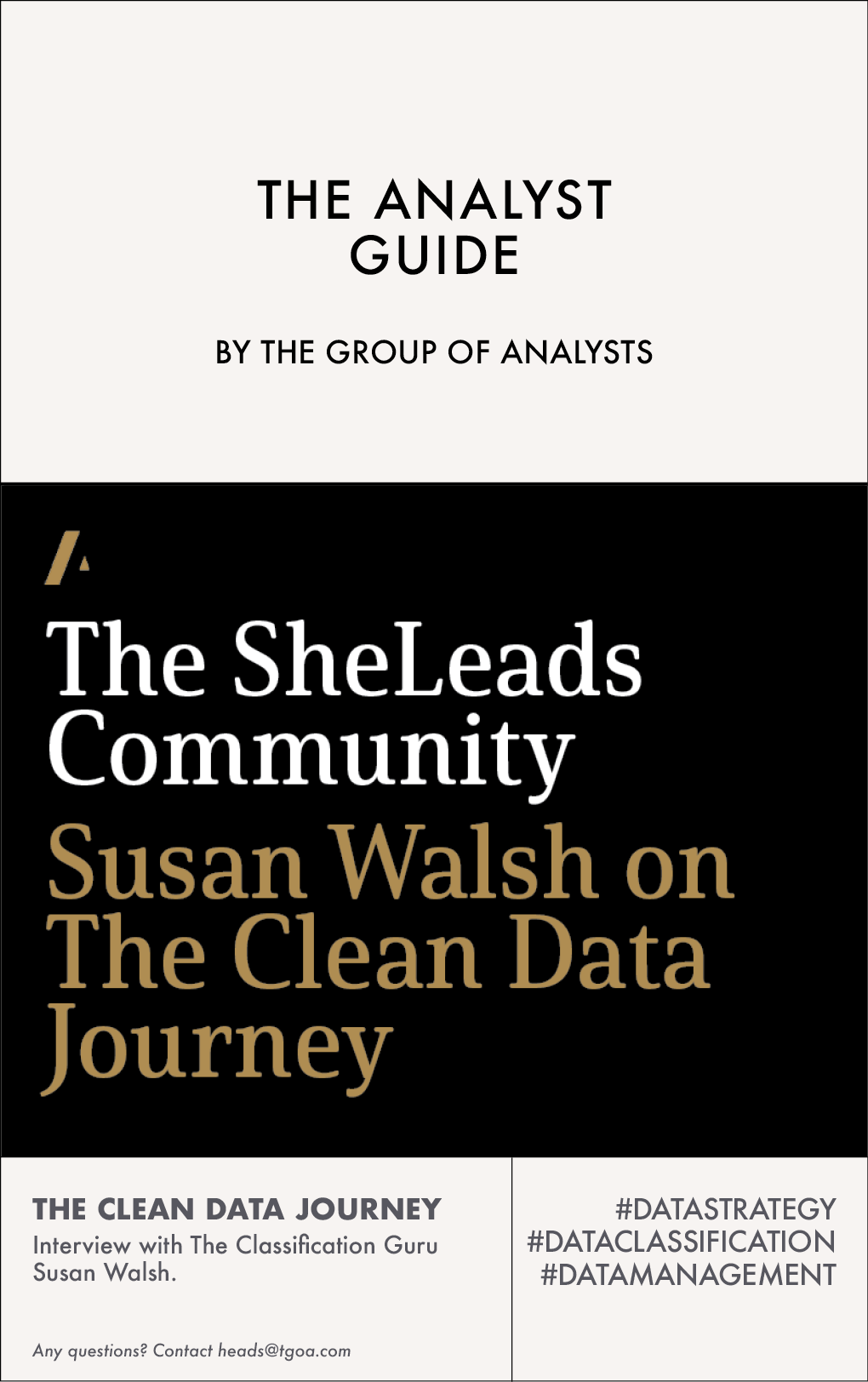 At the core of every successful business decision lies the same foundation: clean – meaning reliable, high-quality – data. Yet the resources required to achieve this standard are often underestimated, with many companies still treating it as an unwelcome cost rather than a valuable investment. In this interview, SheLeads founder Natalia Kotova and TGOA Senior Analyst Carmela Melone talk with Susan Walsh – The Classification Guru – about her journey into data, the role and power of classification, and why human effort and judgment remain indispensable to the clean data journey, even in the age of AI.