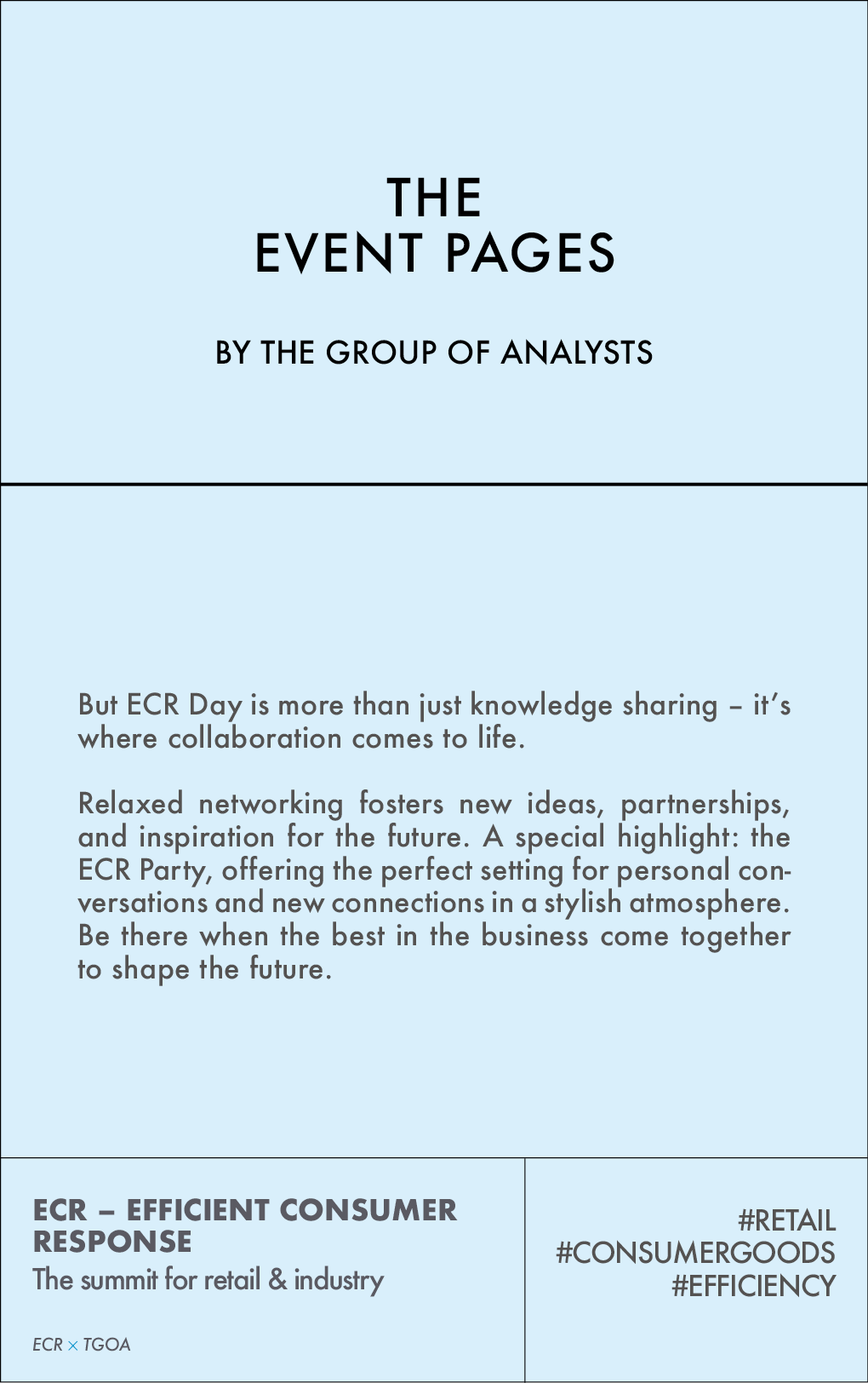 Sharing knowledge, sparking ideas, shaping the future – that’s what the ECR Day has stood for over the past 20 years. It is the premier meeting point for the retail and consumer goods industry to discuss today’s challenges and shape tomorrow’s trends.